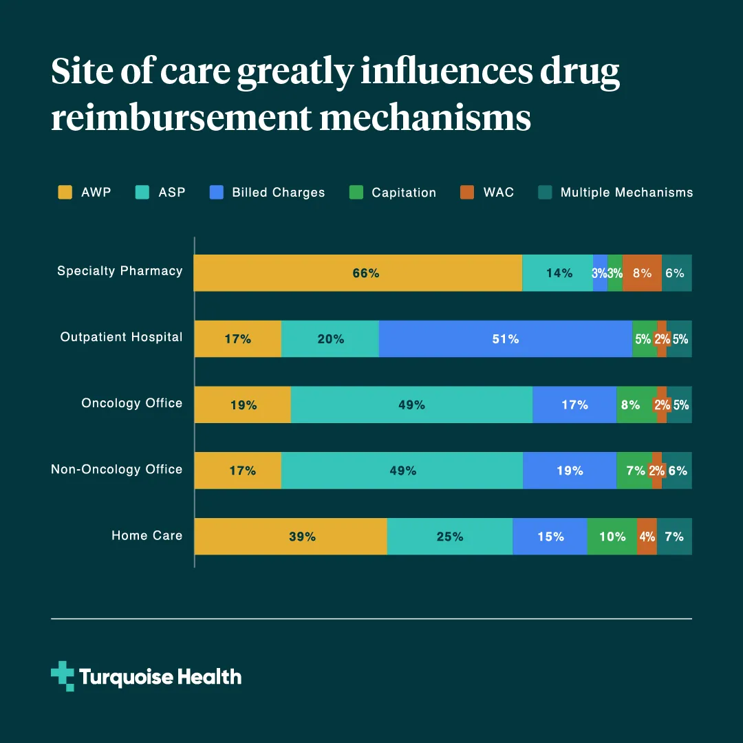 In an office setting; however, 49% of drugs are reimbursed based on some markup of ASP, marking these non-hospital entities far more sensitive to discounts, rebates, and concessions traditionally offered by the pharma manufacturer.